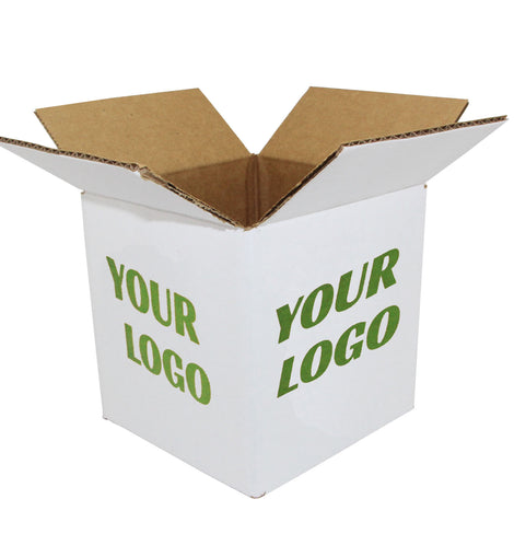 Size 8x8x8 cube shaped white cardboard box perfectly fits small size items for shipping.  Whether you sell food or medical supplies, cosmetics etc, this shipper box is a perfect packaging solution for your business  Just print your logo on either two or all four sides and it's ready to go.  Customization of shipping boxes never been this easy, plus these brown shipping boxes are fully recyclable and proudly made in the USA.